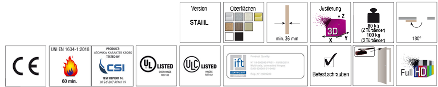 Die Kombination dieser Eigenschaften erlaubt eine Tragkraft von 80kg mit zwei Türbandern. Entwickelt um zuverlässig zu sein. |